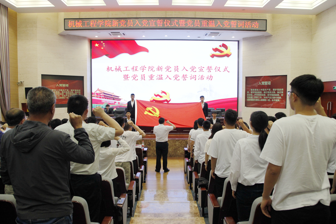 在庆祝中国共产党成立100周年之际,为激发全体党员牢记历史、不忘初心、坚定不渝、矢志奋斗,6月24日下午,机械工程学院党委在新城校区明德楼第一报告厅举办新党员入党宣誓仪式暨党员重温入党誓词活动和党史学习教育专题党课。学院全体党委委员、全体教师、学生党员、入党积极分子共350余人参加本次活动。院长陈红霞主持活动。