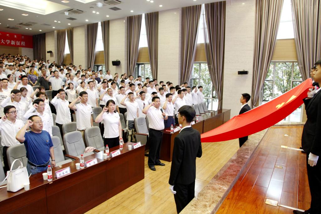 宣誓仪式在庄严的《国歌》声中拉开帷幕。在院党委书记车广东同志的带领下,学院党委委员、全体老党员及78位新党员面对鲜红的党旗庄严宣誓。随后,车广东作了题为“汲取百年奋斗力量 谱写学院发展新篇章”党史学习教育主题党课,从党史中汲取前行力量,新发展把握新机遇、新征程展现新作为3个方面进行了系统、详细的解读,并结合全国教育大会精神和新工科建设的要求,号召全体党员汲取奋进力量、明确责任担当,在不懈奋斗中开创学院改革发展新局面,以优异成绩迎接中国共产党成立100周年和建校70周年。