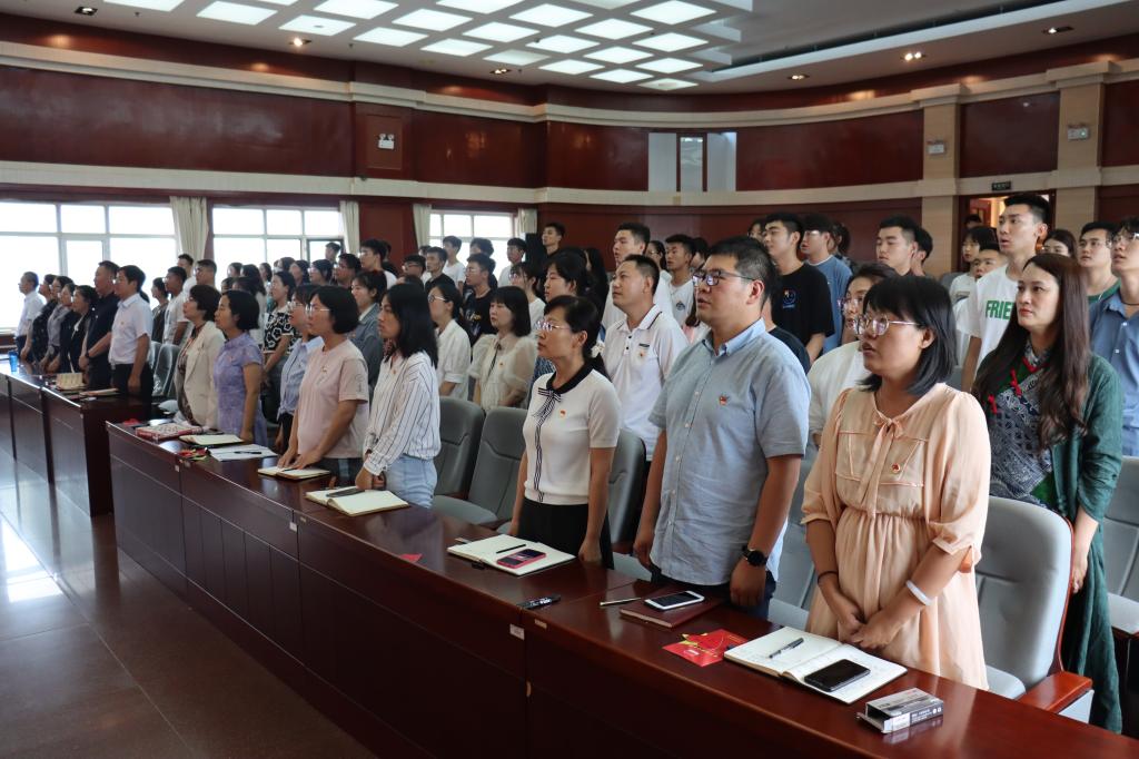 6月24日下午,在庄严的国歌声中,轻工与纺织学院庆“七一”党员大会在金川校区电力大楼十楼第一报告厅拉开帷幕。学院党委书记张翔,副院长王利平、高晓平出席会议。学院全体教工党员和学生党员参会。党委副书记、副院长达布希拉图主持会议。