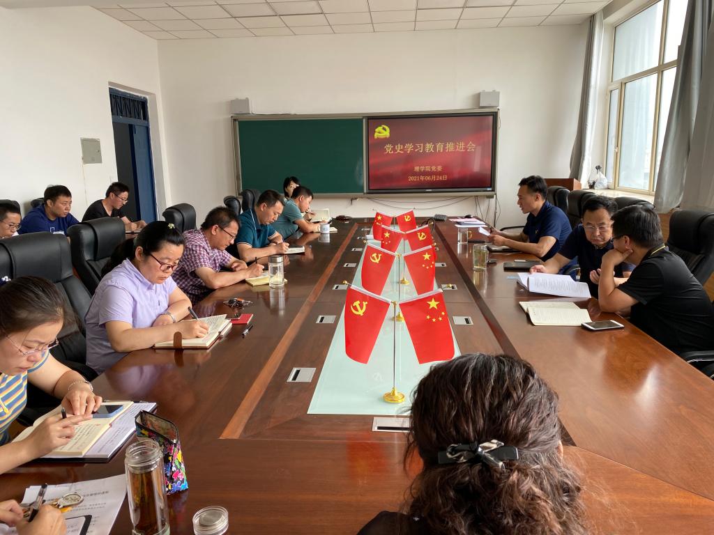 6月24日下午,理学院党委在新城校区实验楼516会议室召开党史学习教育工作检查反馈会暨教职工党支部支委培训会。学院党委委员、教职工党支部委员和行政管理人员参加会议,学院党委副书记、院长庞晶主持会议。