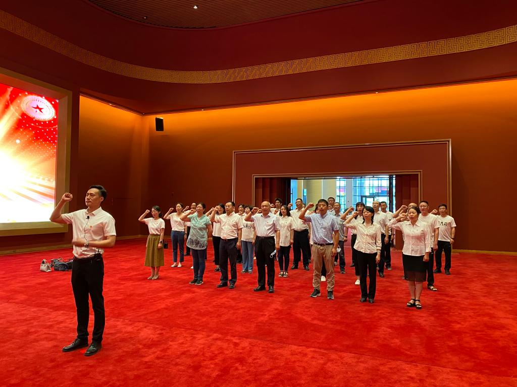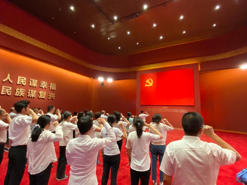 参观最后,学院党委副书记、副院长李强带领大家面向鲜红的党旗,集体重温了入党誓词。
