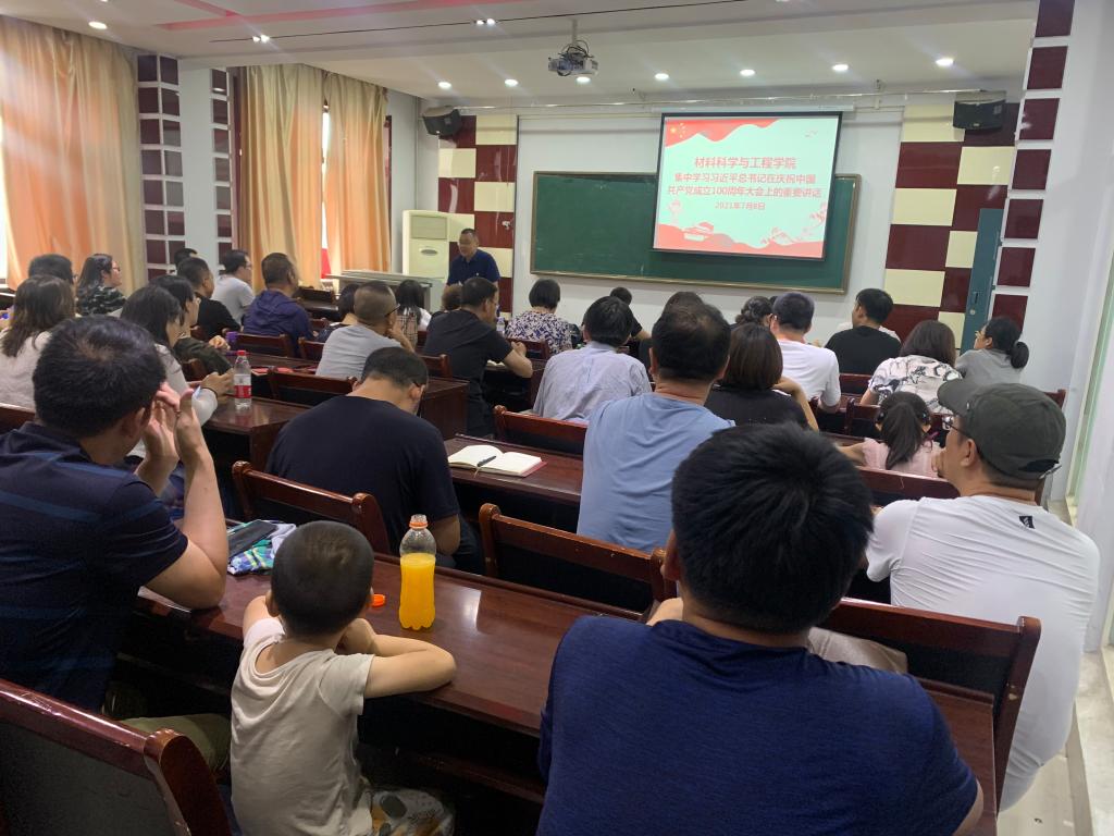 7月8日下午,材料科学与工程学院党委召开习近平总书记“七一”重要讲话精神集中学习会,党委书记白朴存主持,学院全体教职工参会。