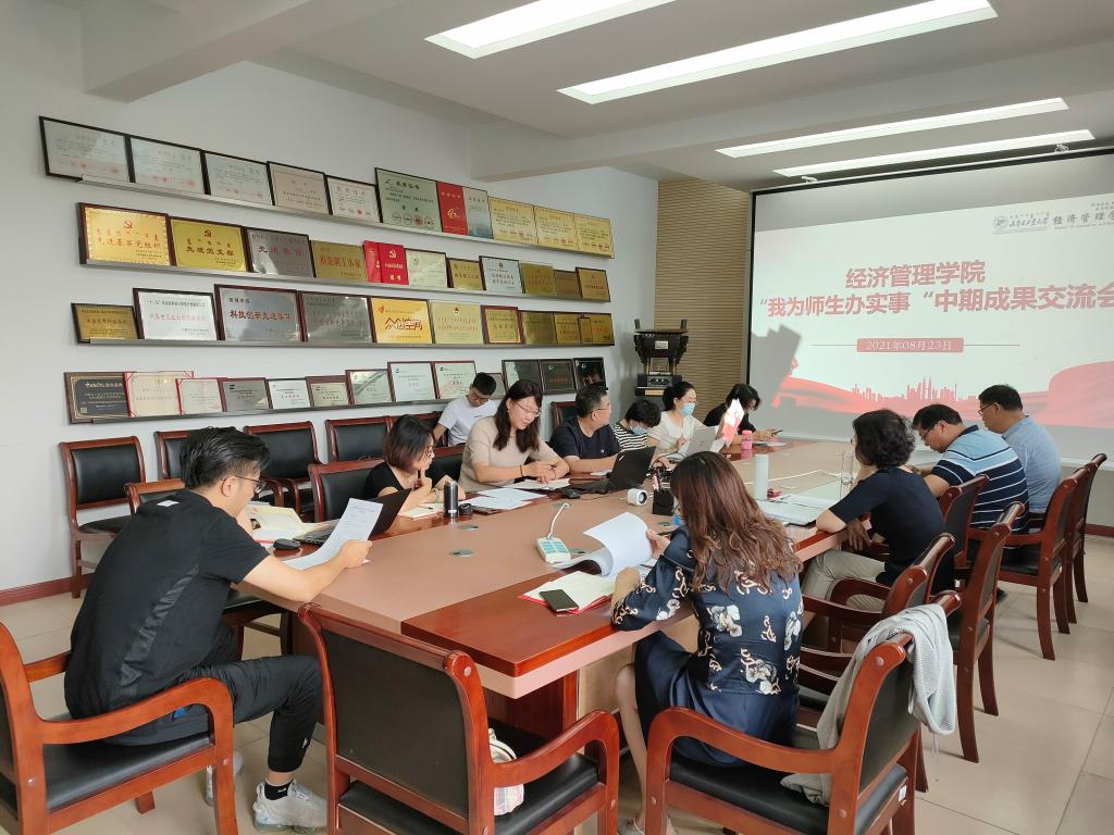 根据党史学习教育工作安排,8月23日,经济管理学院党委在新城校区实验楼317会议室召开“我为师生办实事”中期成果交流会。学院党委委员、各党支部书记参加,学院党委书记任慧主持会议。