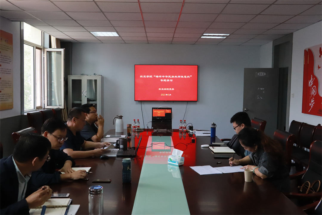 8月26日,航空学院党委开展“铸牢中华民族共同体意识”专题学习。学习采取线上和线下两种方式进行。航空学院党委中心组成员、各党支部书记线下参会,其余师生党员线上参会。院党委书记郭凌峰领学。