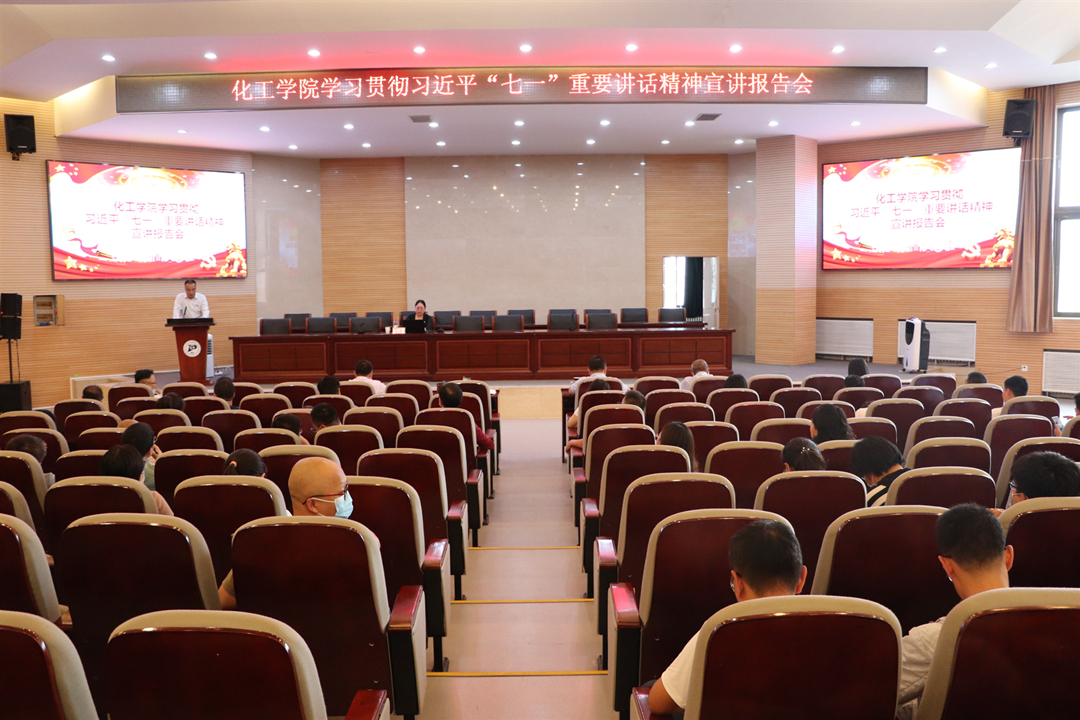为深入学习贯彻习近平总书记在中国共产党成立100周年庆祝大会上的重要讲话精神,全面推进党史学习教育走深走实,9月2日下午,化工学院党委邀请校党委讲师团成员、马克思主义学院院长马军教授,为全院师生党员作学习习近平总书记“七一”重要讲话精神专题报告。学院党委书记王凯主持报告会。