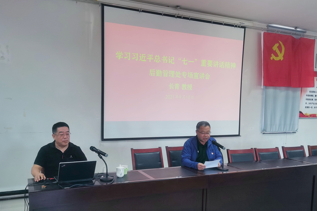 9月10日上午,后勤管理处党总支举行学习习近平总书记“七一”重要讲话精神专场宣讲会,邀请经济管理学院院长长青教授作专题宣讲。后勤管理处领导班子、科级干部、全体党员及职工代表参加学习。