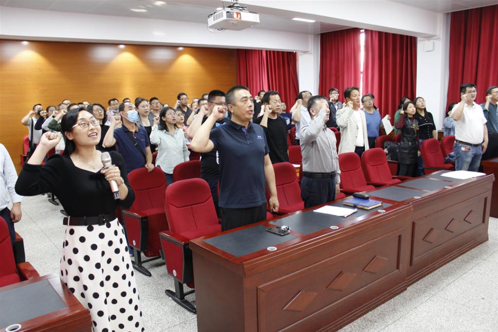 学校2020年“师德标兵”、建工系党支部书记时金娜,带领全体教师面向国旗宣誓。随后全体教师签订了《师德承诺书》。