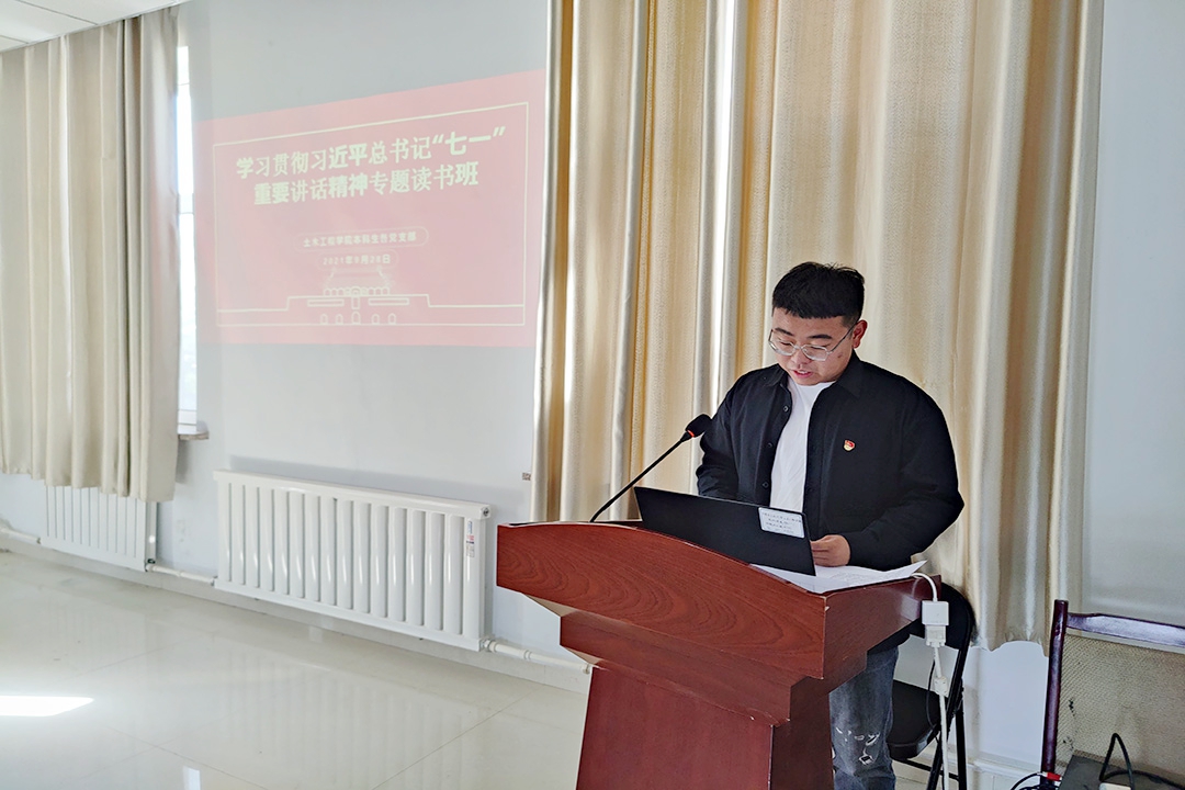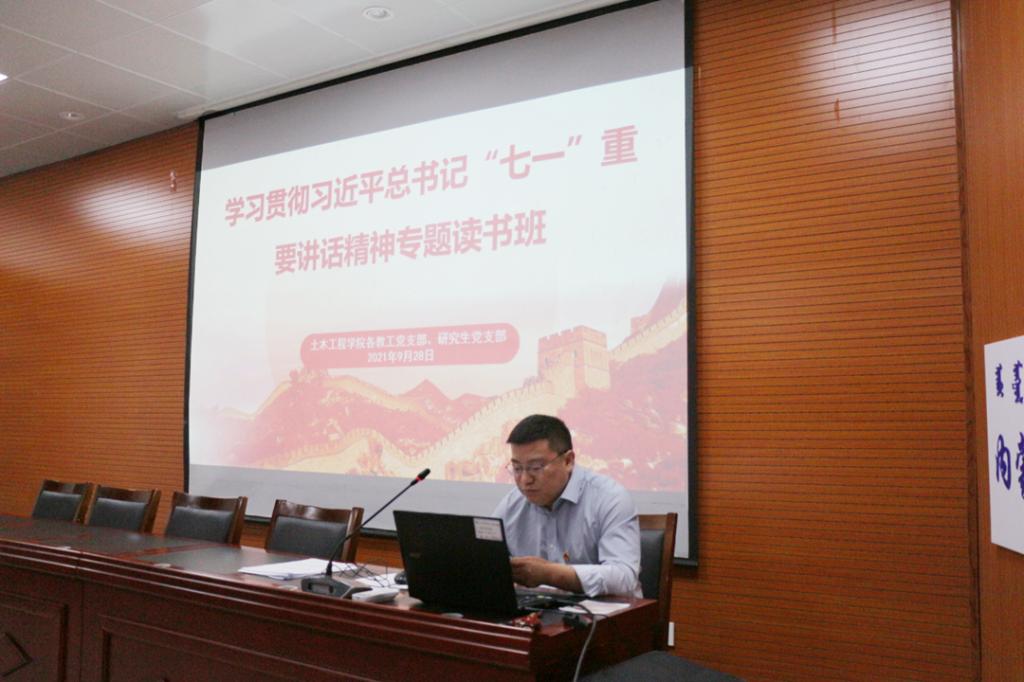 9月28日至29日,土木工程学院党委分别在新城校区土木馆B219会议室和土木馆C301会议室同步举办专题读书班,深入学习贯彻习近平总书记在庆祝中国共产党成立100周年大会上的重要讲话精神,重温党的奋斗历程和伟大成就,感悟党的光荣传统和优良作风,传承党的历史经验和时代使命,在学思践悟中做到学史明理、学史增信、学史崇德、学史力行。学院全体教师党员、学生党员和预备党员共180余人参加学习。