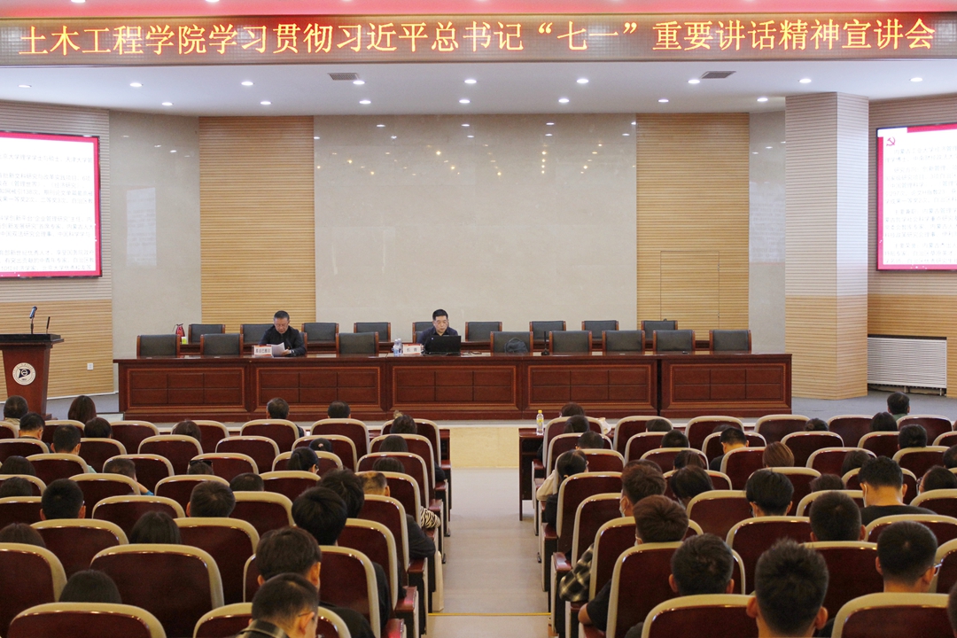 为深入学习贯彻习近平总书记“七一”重要讲话精神,推动党史学习教育走深走实,9月30日下午,土木工程学院党委在新城校区化工楼报告厅举行学习贯彻习近平总书记“七一”重要讲话精神专题宣讲报告会。邀请学校党委讲师团成员、经济管理学院院长长青教授作宣讲报告。学院全体教职工、学生党员、预备党员、发展对象、入党积极分子共470余人参加。学院党委书记那音巴雅尔主持报告会。
