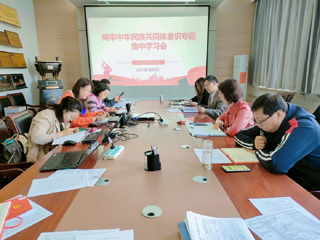 10月7日,经济管理学院党委在新城校区主楼317会议室召开铸牢中华民族共同体意识专题集中学习会。学院党委委员、各党支部书记参加学习,学院党委书记任慧主持会议。