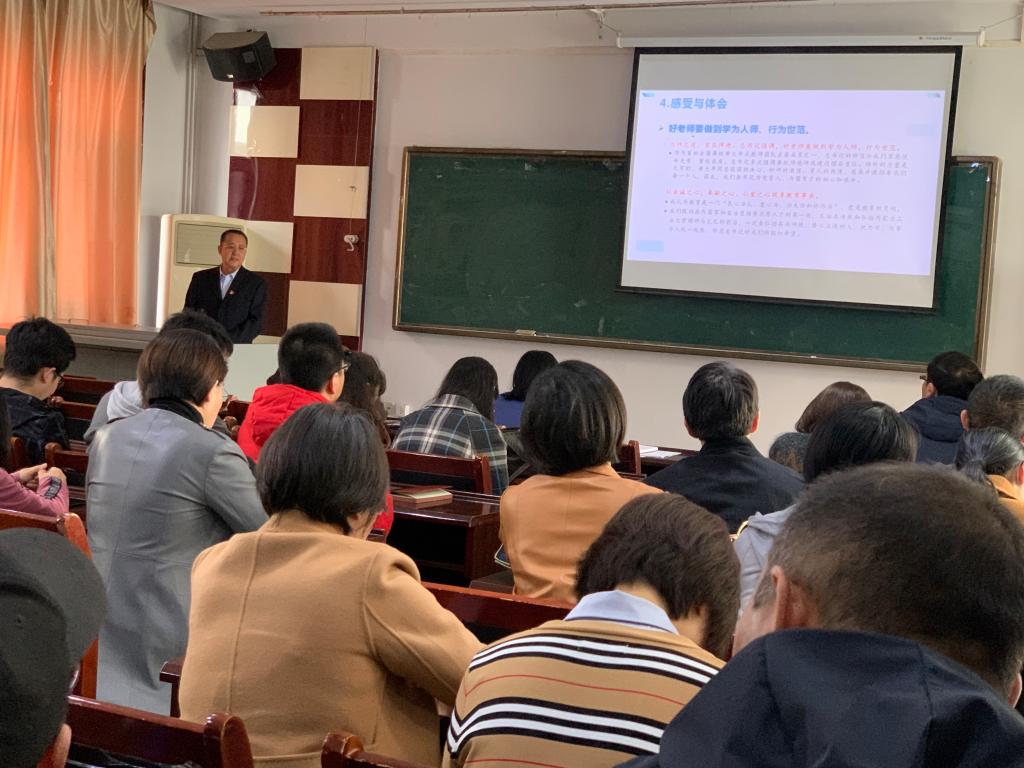 会上,董俊慧教授作了题为“以黄大年同志为榜样 做党和人民满意的好老师”的师德报告。“材料焊接及成形教师团队”获得了首届全国高校黄大年教师团队,总书记的回信饱含了对教育工作的重视,对教育工作者的关怀。信中字字句句是嘱托,也是期望。中国的历史就是一代又一代中国人接力奋斗的历史。董俊慧老师重点谈了他的感受和体会,表示将以更加饱满的工作热情,更加昂扬的精神状态,更加执着的事业追求,肩负起教书育人和科学探索的重任,沿着黄大年同志的足迹砥砺前行;将以“四有好老师”标准为标杆,从服务中国高等教育事业发展的大视野和助力国家与自治区重大战略需求发展的使命职责出发,构筑起新时代工科高校立德铸魂新堡垒,助力铸牢中华民族共同体意识。他号召全体教师,要不辜负总书记的嘱托,以身作则,加强课程思政建设,将思政教育贯穿始终。他勉励同学们,要将人生规划与祖国的明天、民族的发展、社会的需求联系在一起,到国家最需要的地方建功立业,为实现中华民族伟大复兴的中国梦贡献青春力量。