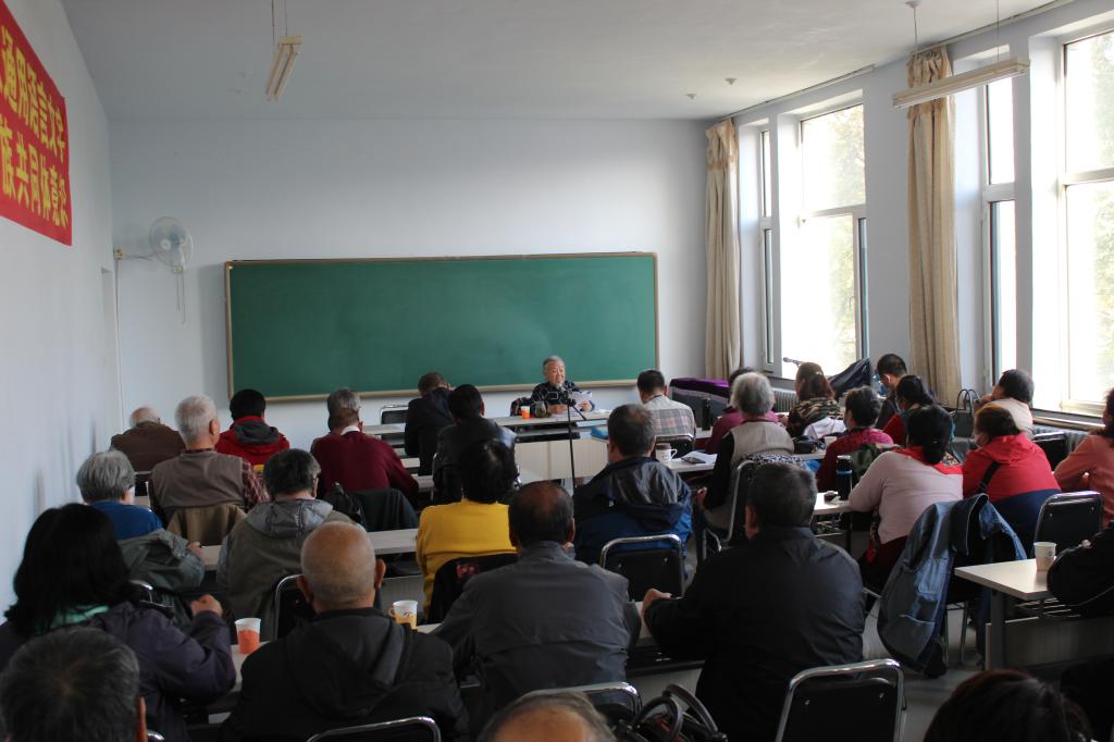 10月19日下午,离退休人员工作处党总支邀请刚刚获评“教育世家”荣誉称号的beat365退休教师刘晨晞教授,为离退休老同志们讲授家国情怀的故事。离退休人员工作处党总支各支部书记、委员、关工委成员、老教授协会成员、在职工作人员等70余人聆听讲座。