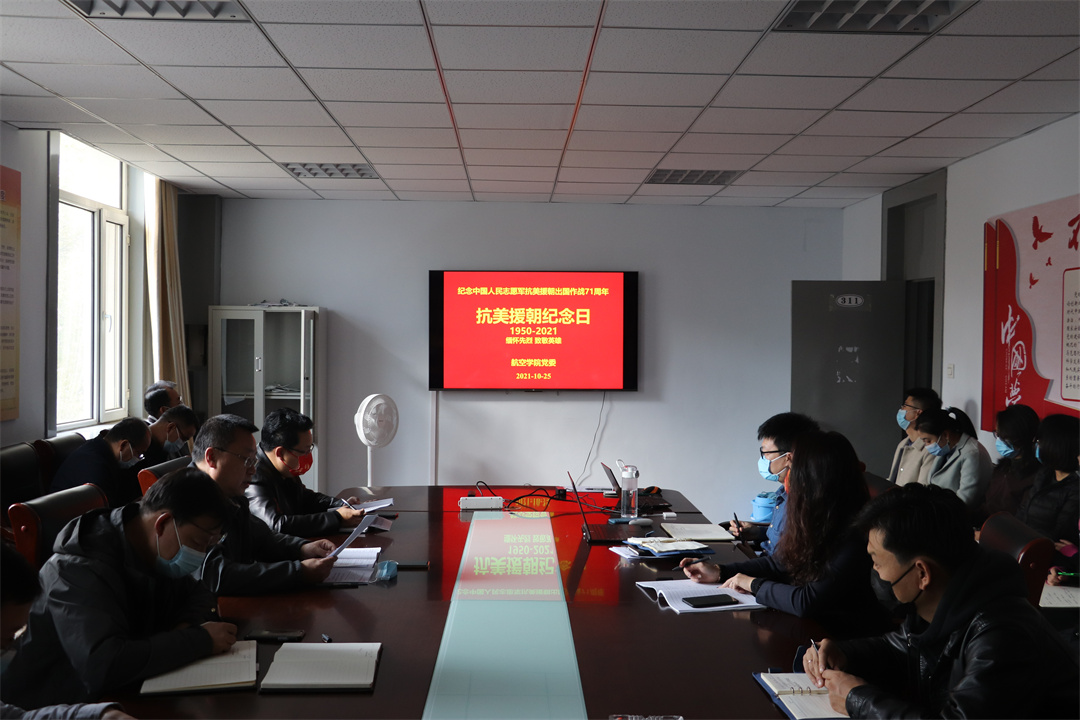 10月25日,值此纪念中国人民志愿军抗美援朝出国作战71周年之际,航空学院举办“抗美援朝精神”专题学习会。学院党委书记郭凌峰主持会议,全体教职工通过线上、线下两种方式参加学习。