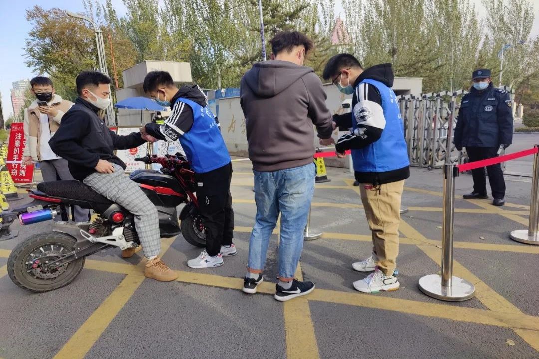 师生志愿者们分别在学校北门、小吃街等位置站岗,保证了同学们“宿舍-学校”两点一线的行动路线,最大程度上杜绝同学们与外界的接触,从而保障了大家的安全。他们引导着来往的同学们,提醒进入学校的同学们出示校园卡和健康码。秋风萧瑟中,坚毅忙碌的身影仿佛守护学校安全的战士。