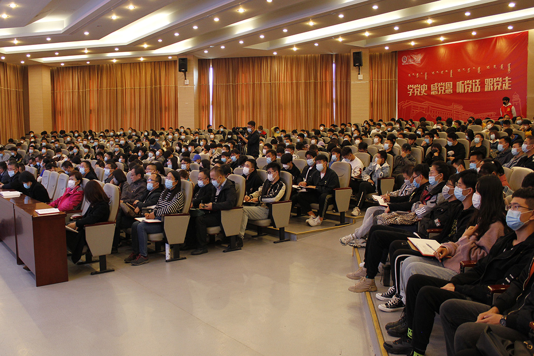 为深入学习贯彻习近平总书记“七一”重要讲话精神,推动党史学习教育走深走实,11月4日下午,土木工程学院党委邀请自治区党委党史学习教育宣讲团成员、校党委委员、宣传部部长王武研究员在第三教学楼报告厅讲授专题党课。学院全体教职工、学生党员、预备党员、发展对象、入党积极分子共470余人参加。学院党委书记那音巴雅尔主持。