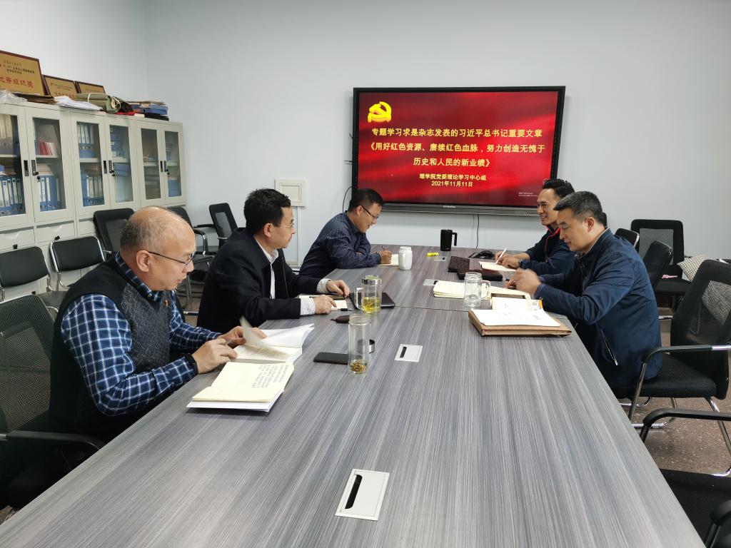 11月11日下午,理学院党委在新城校区实验楼516会议室召开理论学习中心组学习会,专题学习《求是》杂志发表的习近平总书记重要文章《用好红色资源、赓续红色血脉,努力创造无愧于历史和人民的新业绩》。学院党委理论学习中心组成员参会。学院党委书记姜鑫主持会议。