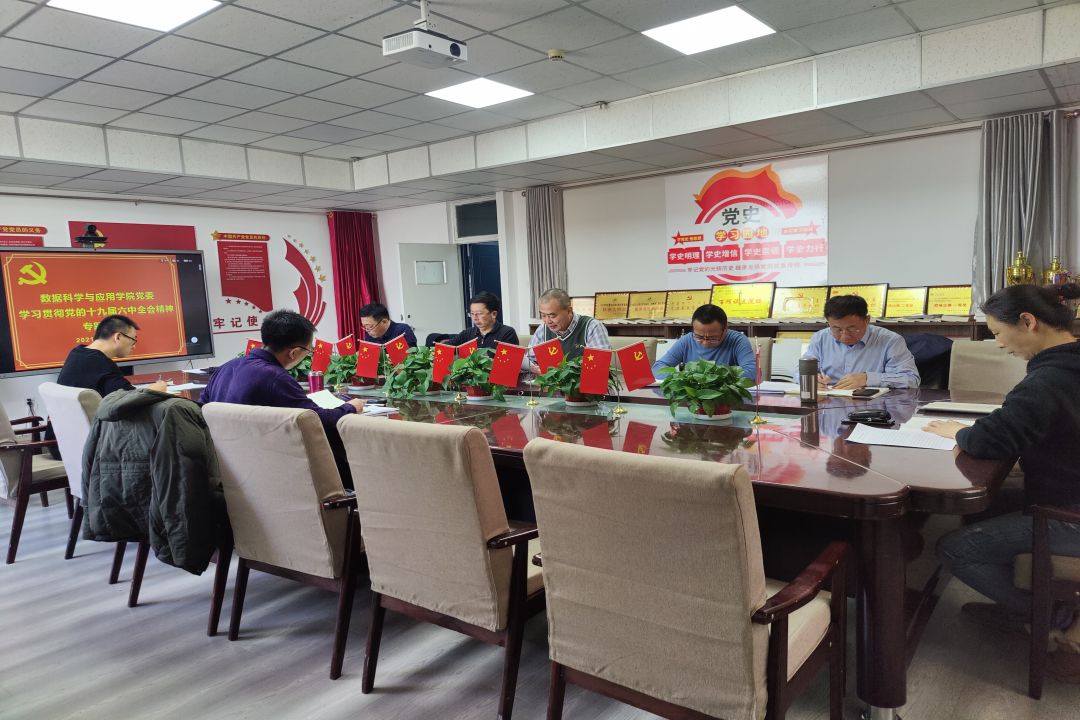 11月25日上午,数据科学与应用学院党委在金川校区电力大楼1404召开党的十九届六中全会精神专题研讨会。会议由学院党委书记宋智主持,学院党委理论学习中心组成员、教职工各党支部书记参加。学校党史学习教育督查指导组成员到会指导。