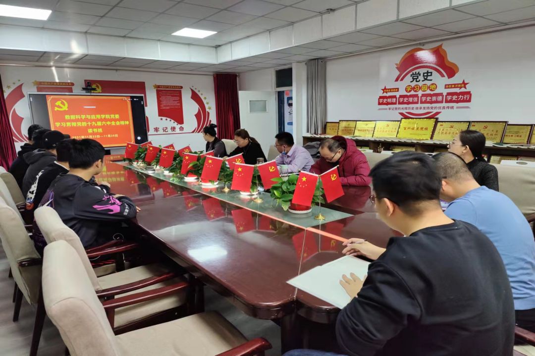 为深入学习贯彻党的十九届六中全会精神,从党的百年奋斗史中汲取走向未来的无穷智慧和强大力量,扎实推进党史学习教育,11月22日-26日,数据科学与应用学院党委在金川校区电力大楼1404组织开展学习贯彻党的十九届六中全会精神读书班,学院全体教职工党员参加。