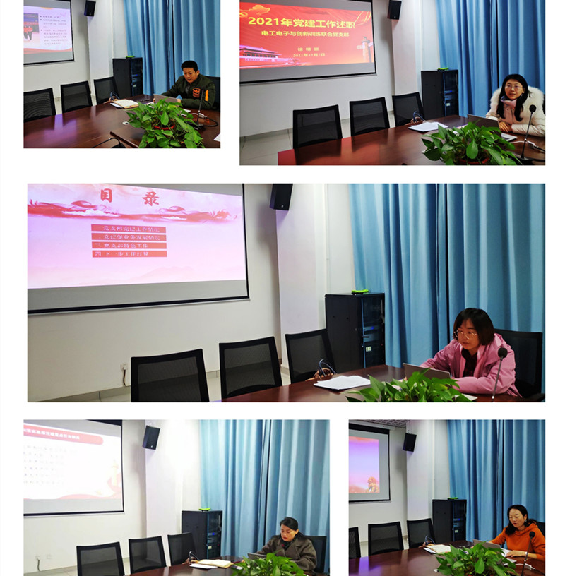 五位党支部书记分别采用PPT汇报形式,图文并茂、重点突出的围绕党支部“三会一课”完成情况、党史学习教育完成情况、基层党建工作、意识形态与思想政治工作,党建促业务发展情况、党支部特色工作及存在问题和下一步打算等几个方面作了详细汇报。