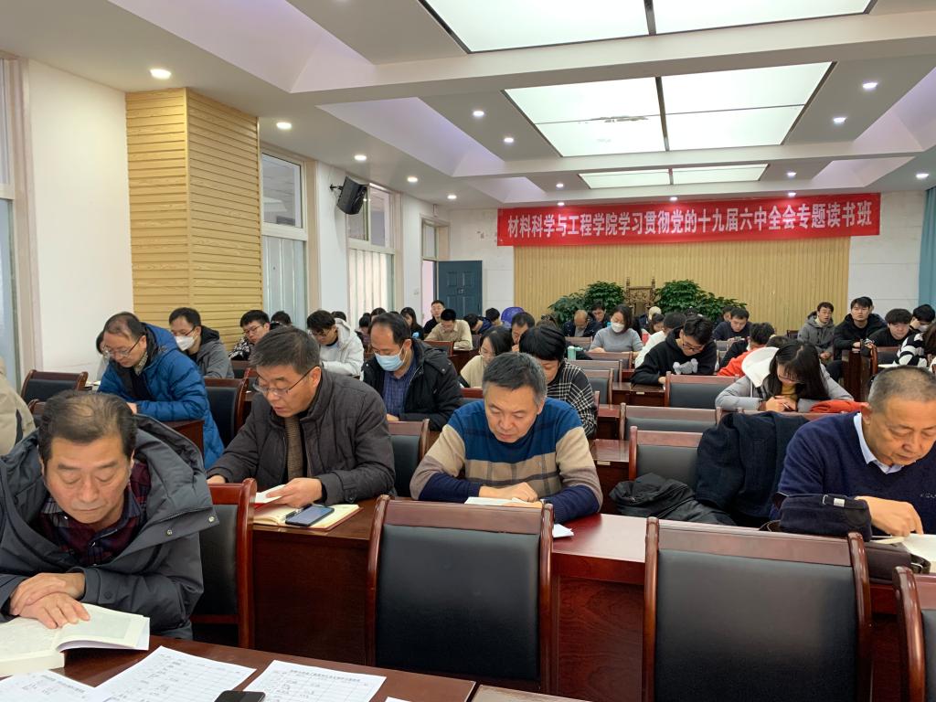 为深入学习宣传贯彻党的十九届六中全会精神,教育引导师生党员干部进一步坚定信仰、增强信念、提振信心,切实把思想和行动统一到全会精神上来,12月20日-21日,材料科学与工程学院党委举办学习贯彻党的十九届六中全会精神专题读书班。学院全体师生党员全程参与学习。