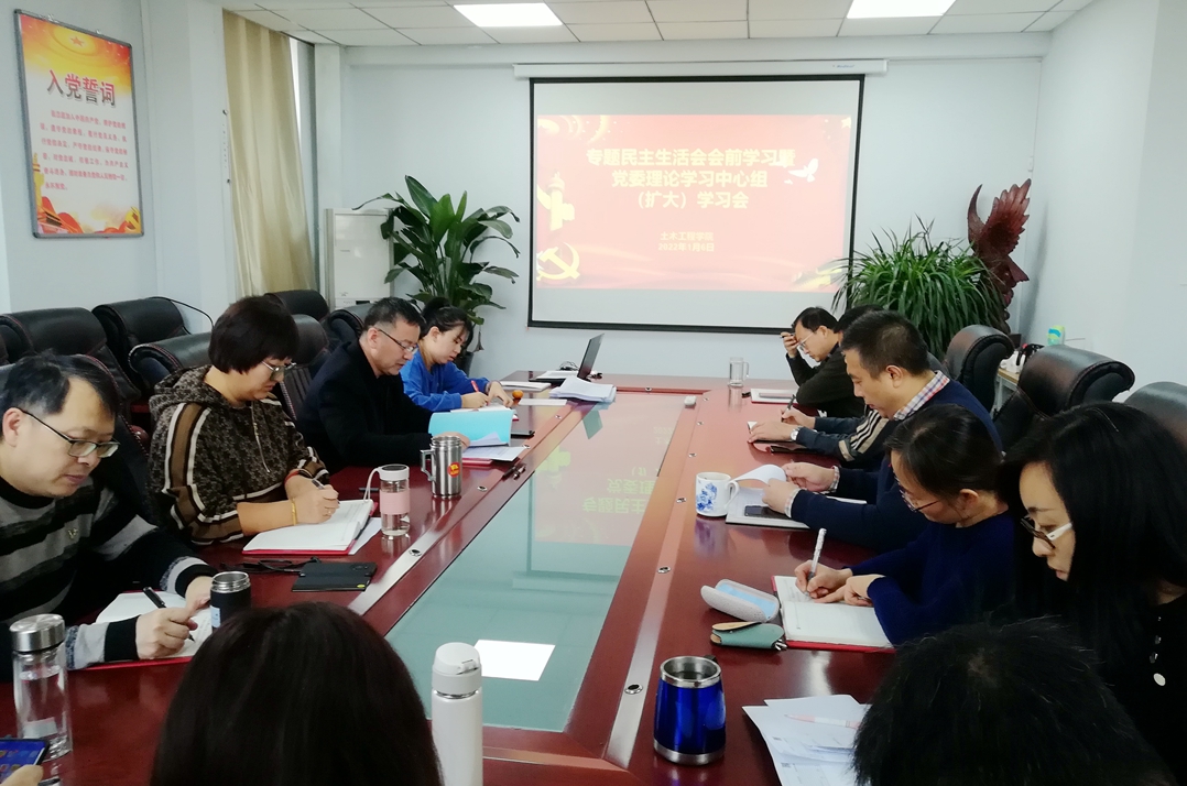1月6日下午,土木工程学院党委在新城校区土木馆C333会议室召开党史学习教育专题民主生活会会前学习暨理论学习中心组(扩大)学习会。院领导、党委委员、全体支部书记参加学习。
