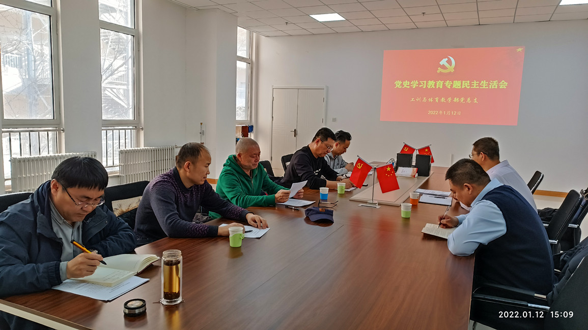 1月12日,工训与体育教学部党总支召开党史学习教育专题民主生活会,党总支书记安雷主持,全体党总支委员参加,督导组成员车广东、李云飞同志到会指导。