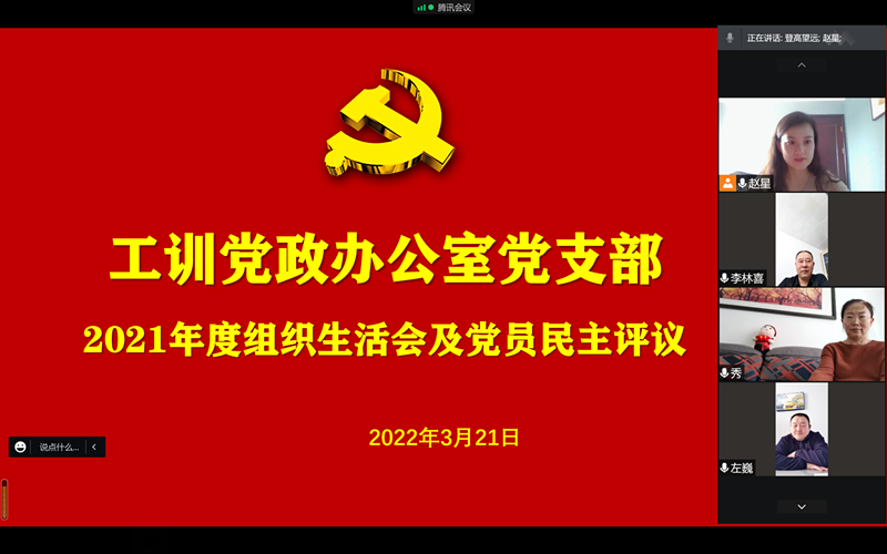 近日,工训与体育教学部党总支所属5个教工党支部线上召开2021年度专题组织生活会并开展民主评议党员。5位处级干部以普通党员身份参加会议,各党支部书记主持会议。