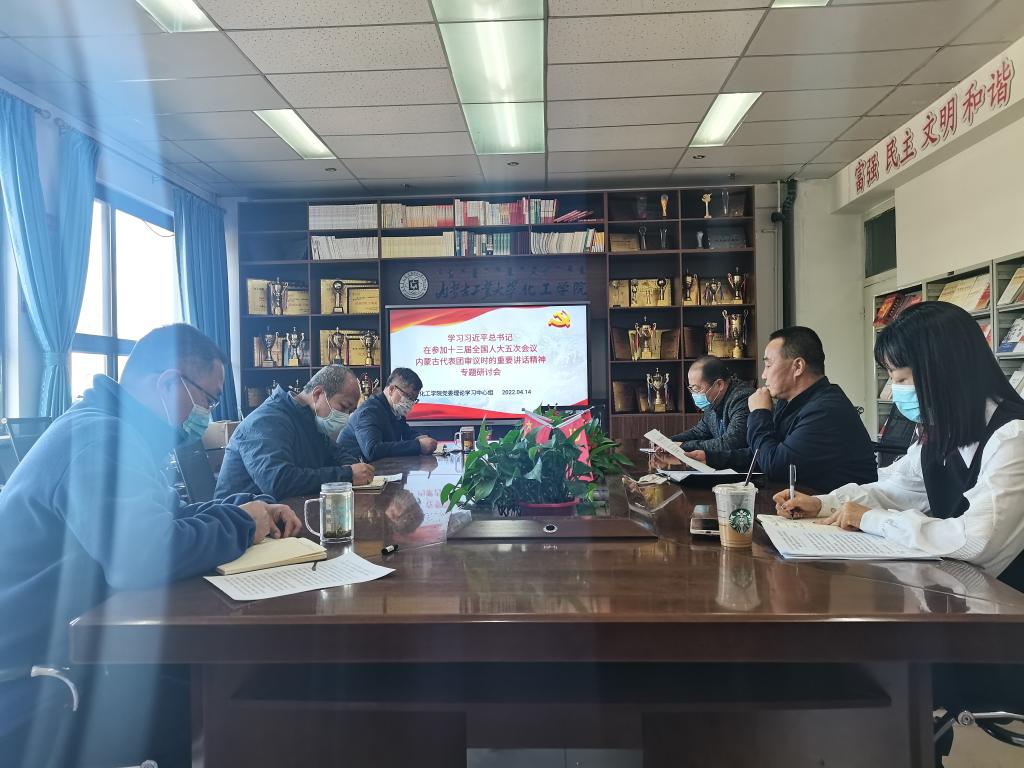 4月14日下午,化工学院党委理论学习中心组召开专题研讨会,专题学习研讨习近平总书记在参加十三届全国人大五次会议内蒙古代表团审议时重要讲话精神。学院全体党委委员参加会议,院党委书记王凯主持。