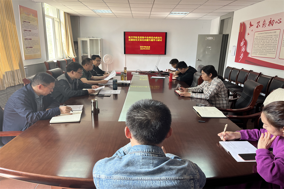 5月9日,航空学院党委召开集中治理党内政治生活庸俗化交易化问题专题学习研讨会。学院党委中心组成员、各党支部书记参加,学院党委书记郭凌峰主持会议。
