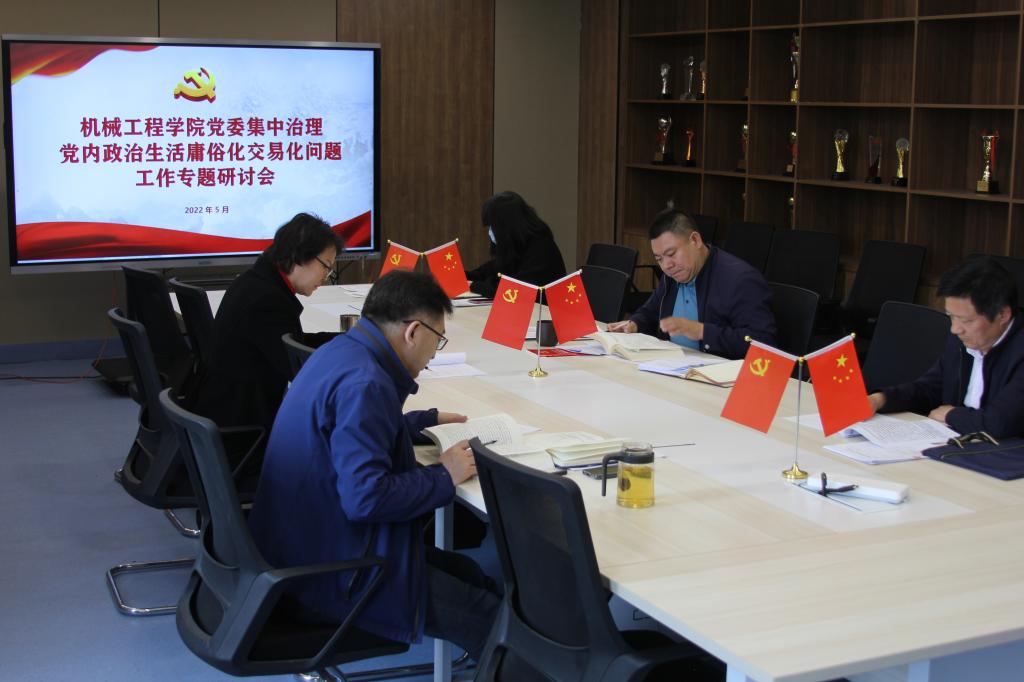 5月11日,机械工程学院党委在机械大楼418召开集中治理党内政治生活庸俗化交易化问题专题学习研讨会。学院党委委员参加会议,院党委书记车广东主持会议。