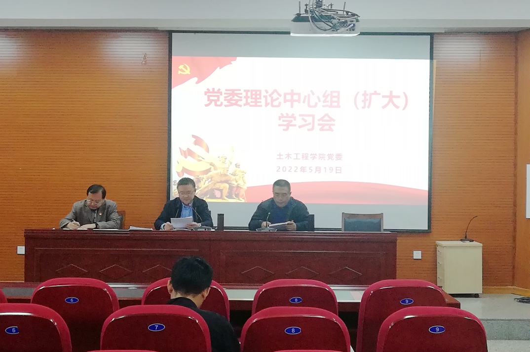 5月19日下午,土木工程学院党委在新城校区土木馆B219会议室召开理论学习中心组(扩大)学习会。院领导、党委委员、科级干部、支部书记参加学习。院党委书记那音巴雅尔主持会议。