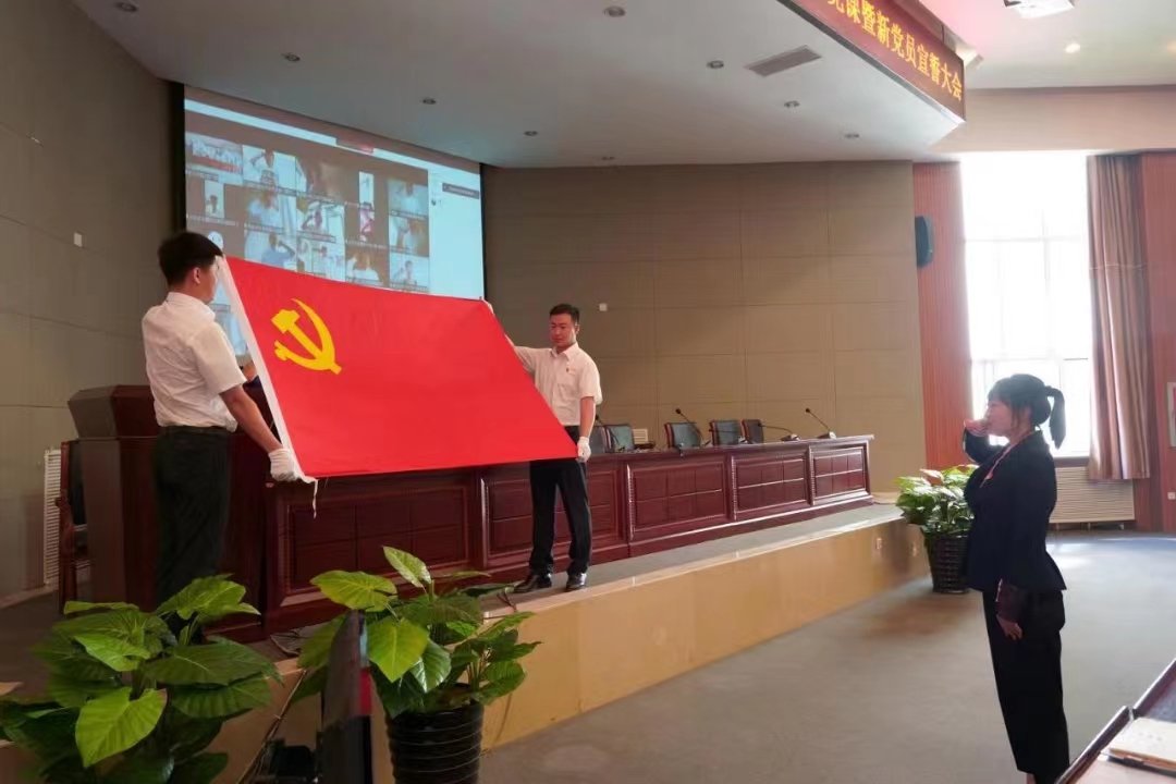 活动在庄严的《国际歌》中拉开序幕。副院长洪海龙宣读各党支部2022年春季学期发展的新党员名单。院党委委员任敏同志带领新党员线上宣誓,全体老党员现场重温入党誓词。