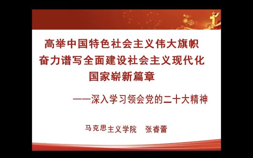 12月8日下午,外国语学院党委线上举办学习贯彻党的二十大精神宣讲报告会,学校党的二十大精神师生宣讲团成员、马克思主义学院张睿蕾副教授以“高举中国特色社会主义伟大旗帜 奋力谱写全面建设社会主义现代化国家崭新篇章”为题宣讲报告。学院党委书记冯小虎主持报告会学院全体教职工参学习。