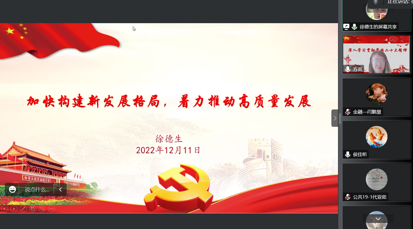 12月11日经济管理学院党委举办学习贯彻党的二十大精神专题宣讲会第四讲,学院副书记、副院长徐德生宣讲报告。学生党员、发展对象、入党积极分子300余人线上聆听报告。