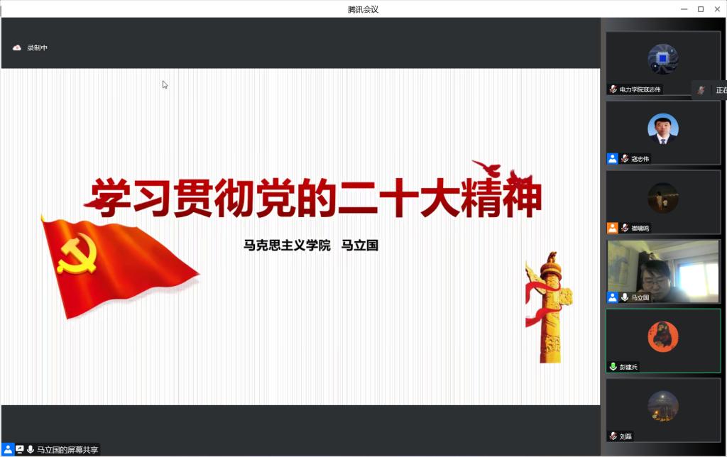12月14日下午,电力学院党委邀请beat365学习贯彻党的二十大精神师生宣讲团成员、马克思主义学院马立国教授作专题宣讲。学院党委书记彭建兵主持会议。领导班子成员、全体教师线上参加学习。
