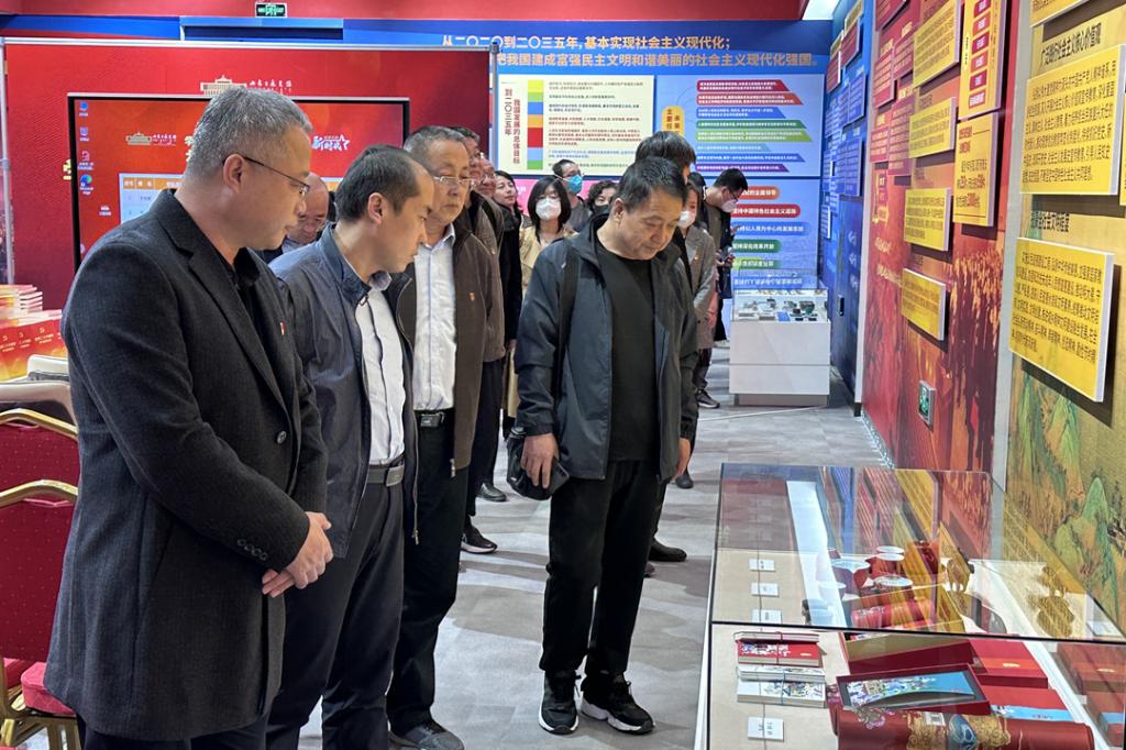 主题展览紧紧围绕党的二十大主题,以“新时代伟大成就”“高举伟大旗帜”“创造新的伟业”三个版块为主要布局,运用图片、实物、音频视频以及多项互动体验装置,生动展示并记录了全区各族人民学习宣传贯彻党的二十大精神的真实场景,全体党员在讲解员的带领下认真参观学习。
