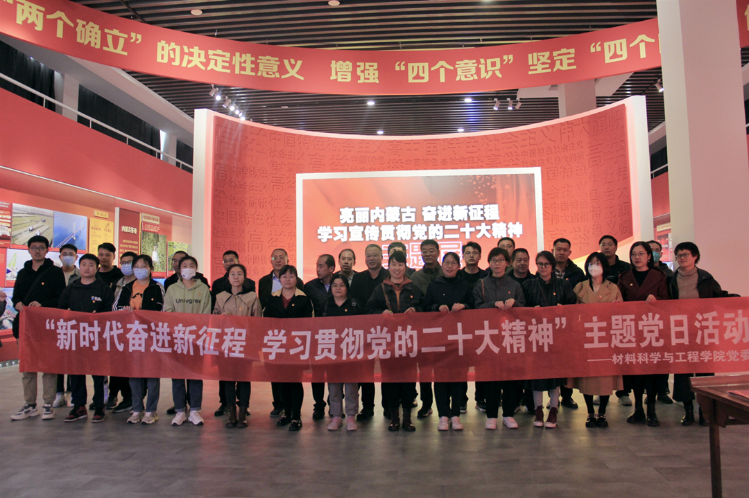 为深入学习贯彻党的二十大精神,进一步增强基层党组织的创造力、凝聚力和战斗力4月13日下午,材料科学与工程学院党委组织部分师生党员开展主题党日活动赴内蒙古展览馆参观“亮丽内蒙古 奋进新征程——学习宣传贯彻党的二十大精神”主题展览