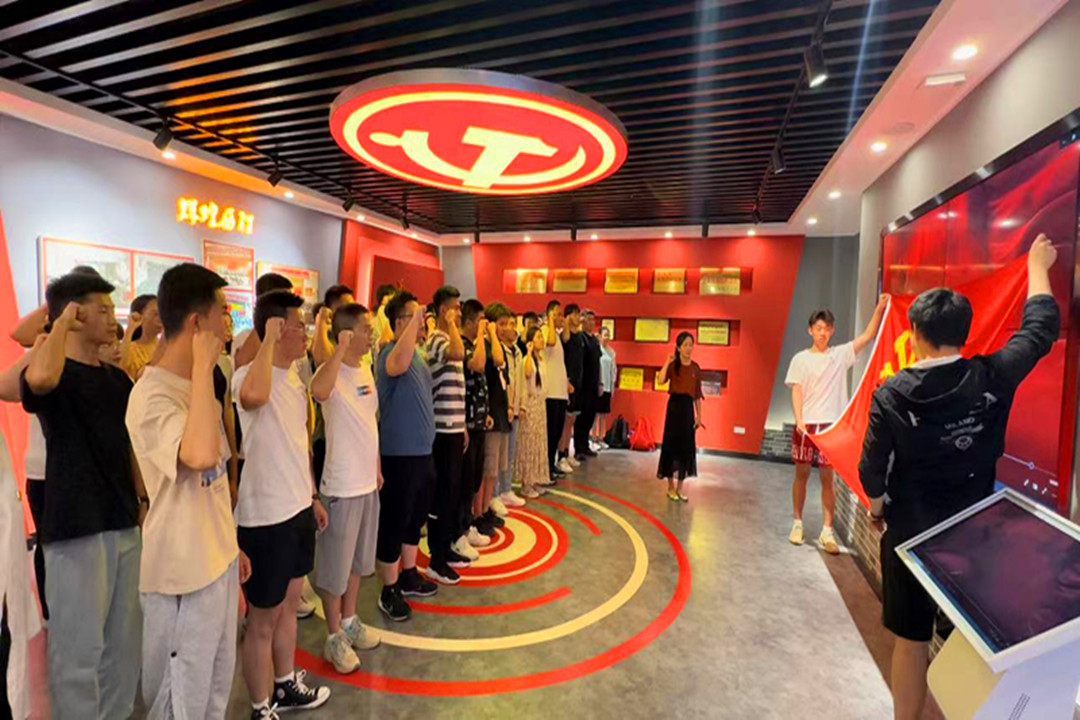 学生党员们跟随讲解员从一块块展板、一件件文物中感受学校的历史积淀、办学历程办学成果体会一代代工大人的奋斗史。参展结束后,同学们在签名墙上留下签名,举行入党宣誓仪式