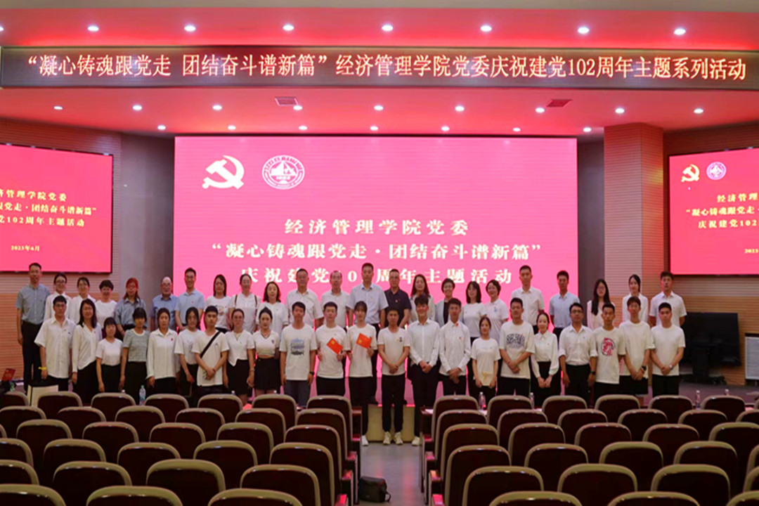 6月28日,经济管理学院党委举办“凝心铸魂跟党走,团结奋斗谱新篇”“庆七一”活动暨党员表彰大会全体教工党员、新发展党员毕业生党员参加。