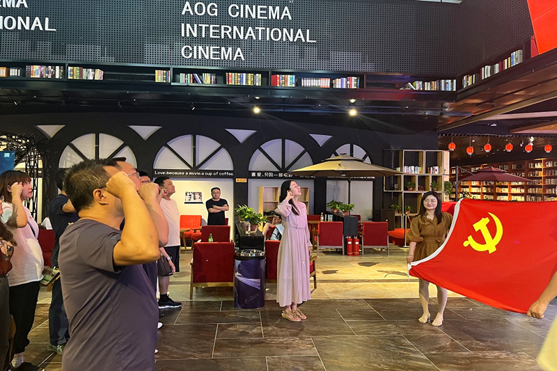 活动中全体党员集体重温入党誓词,随后观看影片《长空之王》。该片讲述了空军试飞员和战机研发团队的光荣事迹,展现了中国空军捍卫祖国领空的决心。