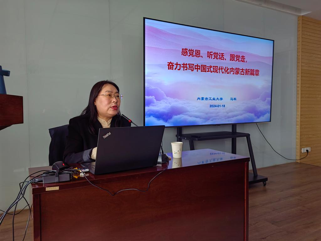 马军聚焦“六句话”的事实和道理,围绕深切领会体悟习近平总书记对内蒙古的关怀厚爱和期望重托如何全面准确把握《国务院关于推动内蒙古高质量发展奋力书写中国式现代化新篇章的意见》精神,以强烈的感恩之心和奋进之志抓好各项工作等内容进行详细讲解