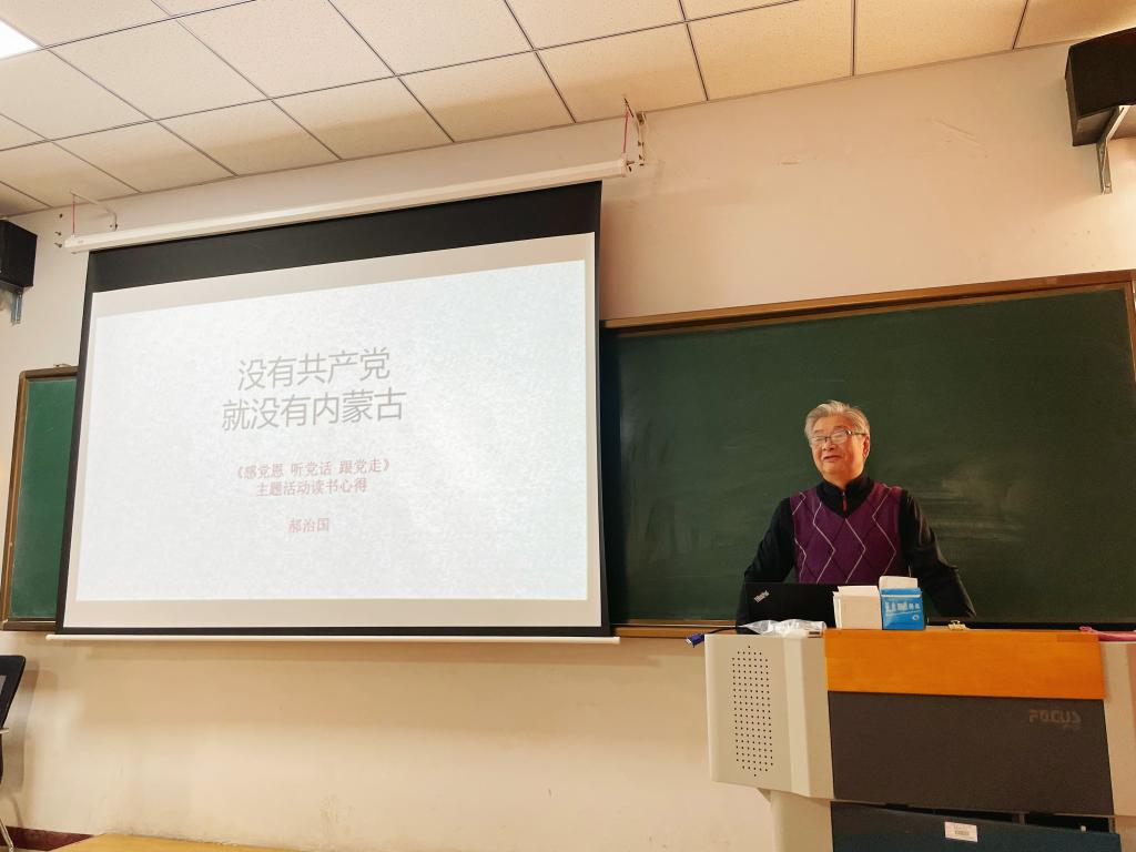 郝治国教授以“没有共产党就没有内蒙古”为题,结合自身近60年的工作教育经历,围绕深刻领会把握“六句话”的事实和道理,深切领会体悟习近平总书记对内蒙古的关怀厚爱和期望重托等方面进行系统解读和深入阐释。讲座主题鲜明、内涵丰富、深入浅出、引人深思,具有很强的思想性、理论性和指导性,为理学院师生带来一堂生动的思想政治理论辅导课。
