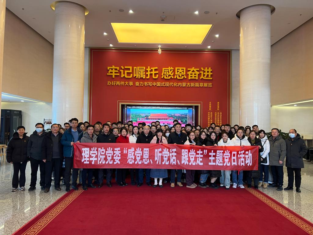 2月29日,理学院党委开展“感党恩、听党话、跟党走”主题党日活动,组织学院全体师生党员赴内蒙古自治区展览馆参观“牢记嘱托 感恩奋进——办好两件大事 奋力书写中国式现代化内蒙古新篇章”主题展。