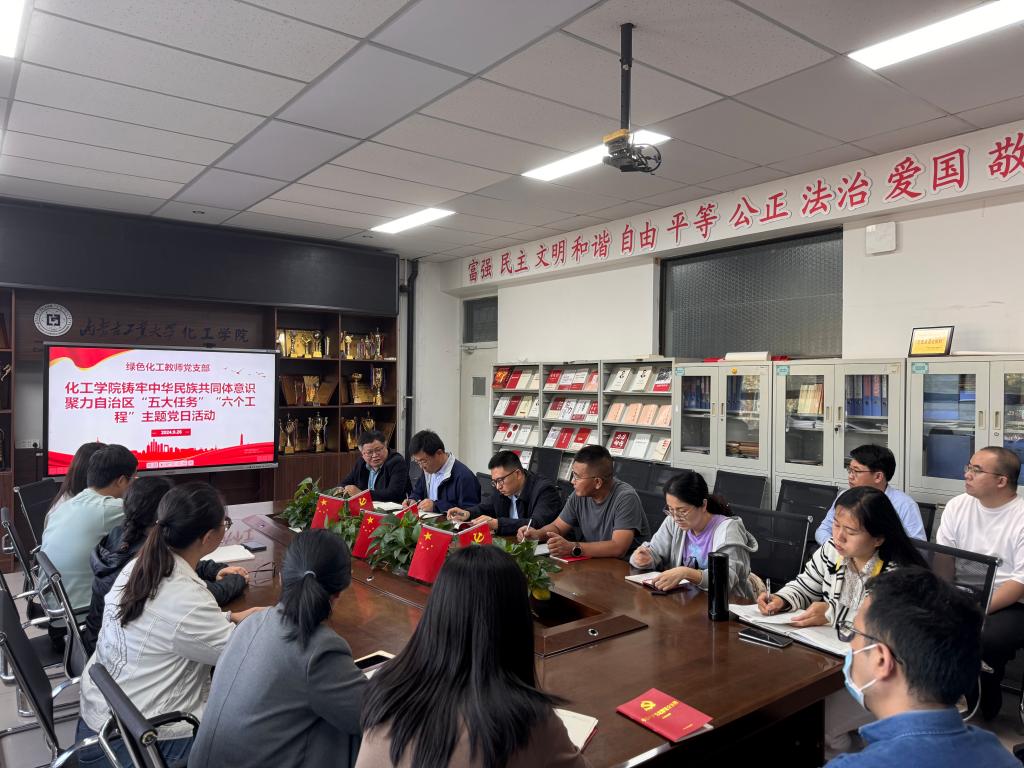 活动期间,各教工党支部围绕自治区“五大任务”“六个工程”“铸牢中华民族共同体意识”“推动学校晋位升级高质量发展”等主题进行集中学习研讨;化学工程与工艺、非金属等专业学生党支部组织党员、党员发展对象赴内蒙古展览馆等地参观学习;7个学生党支部利用课余时间在新城校区北区公寓学生社区、学院党员活动室开展专题学习研讨。