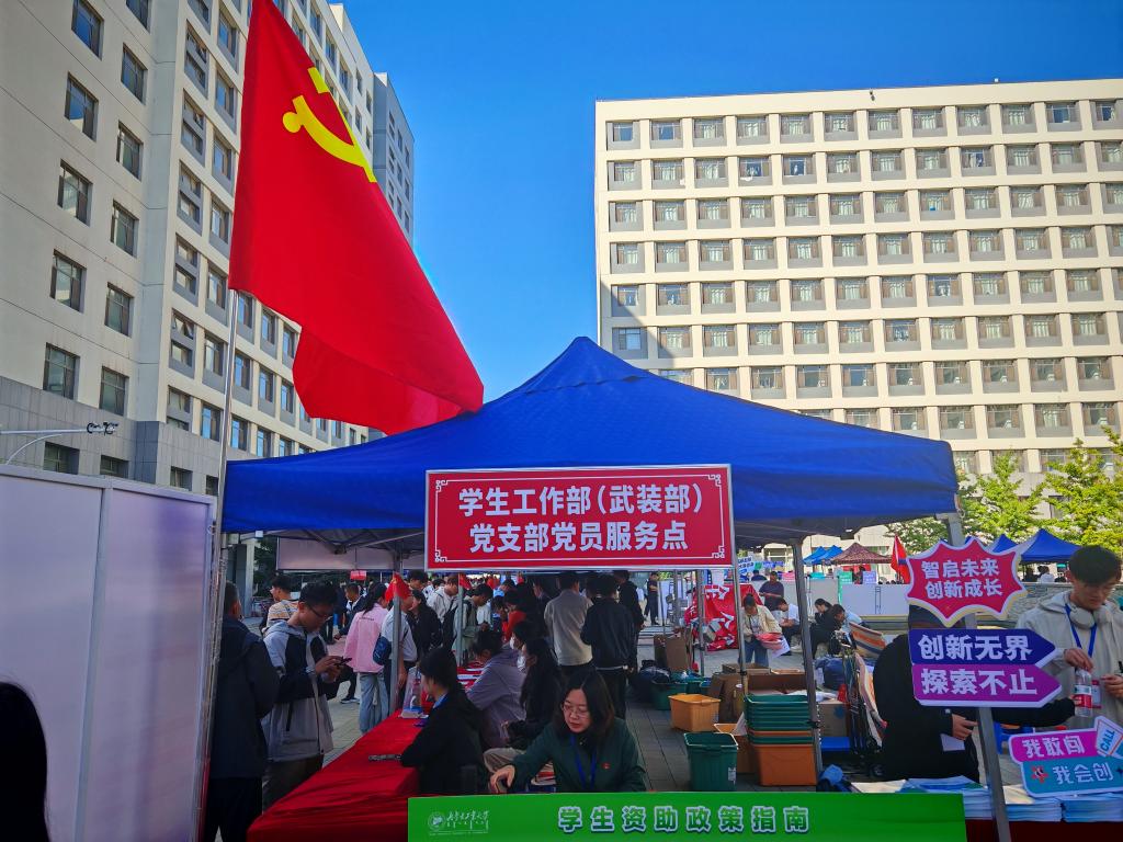学生工作部(武装部)党支部在两校区设置四个党员服务点,组织参与迎新的相关单位党支部开展联合主题党日活动。党员们主动亮明身份,在报到引导、资助助学、新生暖心大礼包发放和咨询答疑等环节,提供耐心细致服务。