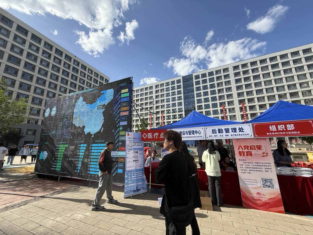 信息化建设与管理中心党支部充分发挥技术优势,为迎新系统稳定运行、数据高效流转提供坚实技术保障,确保数字化迎新工作有序开展。同时,支部选派党员骨干驻守迎新第一现场,细致讲解信息化服务内容,主动对接外部资源,协调移动运营商提供大屏幕设备,实时展示新生报到动态,让入学情况直观清晰,切实提升迎新服务质效。