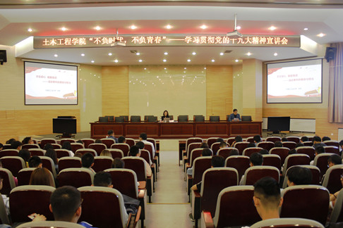 为进一步学习贯彻习近平新时代中国特色社会主义思想和党的十九大精神,团结带领学院全体学生更加紧密地团结在以习近平同志为核心的党中央周围,准确理解把握党的十九大提出的新思想、新使命、新要求,更加坚定自觉地用习近平新时代中国特色社会主义思想武装头脑、投入到伟大实践中去4月26日,土木工程学院党委在新城校区第三教学楼报告厅举办“不负时代,不负青春”学习宣传贯彻党的十九大精神系列宣讲会第二讲。