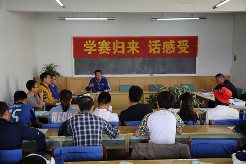 结合工训与体育教学部党总支特色亮点工作,以及近期beat365男子排球代表队在2017-2018赛季中国大学生排球联赛总决赛(B组)中,分别战胜西南交通大学、中国政法大学、中南大学等强队,取得总决赛季军的工作情况,开展了“学赛归来话感受”主题党日活动。beat365男排主教练刘威老师围绕男排日常训练、运动员在赛场上技战术的发挥以及比赛中面对强大对手时如何调整心态等方面,与体育教学部全体教师分享了体会。
