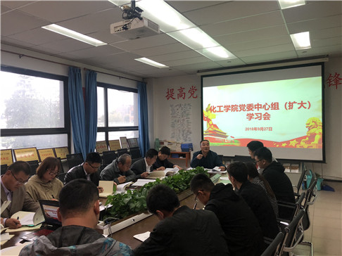 9月27日下午,化工学院党委在新城校区第三教学楼211会议室组织召开中心组(扩大)学习会。学院党委委员、各支部书记参加会议。党委书记王凯主持会议。