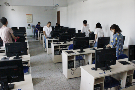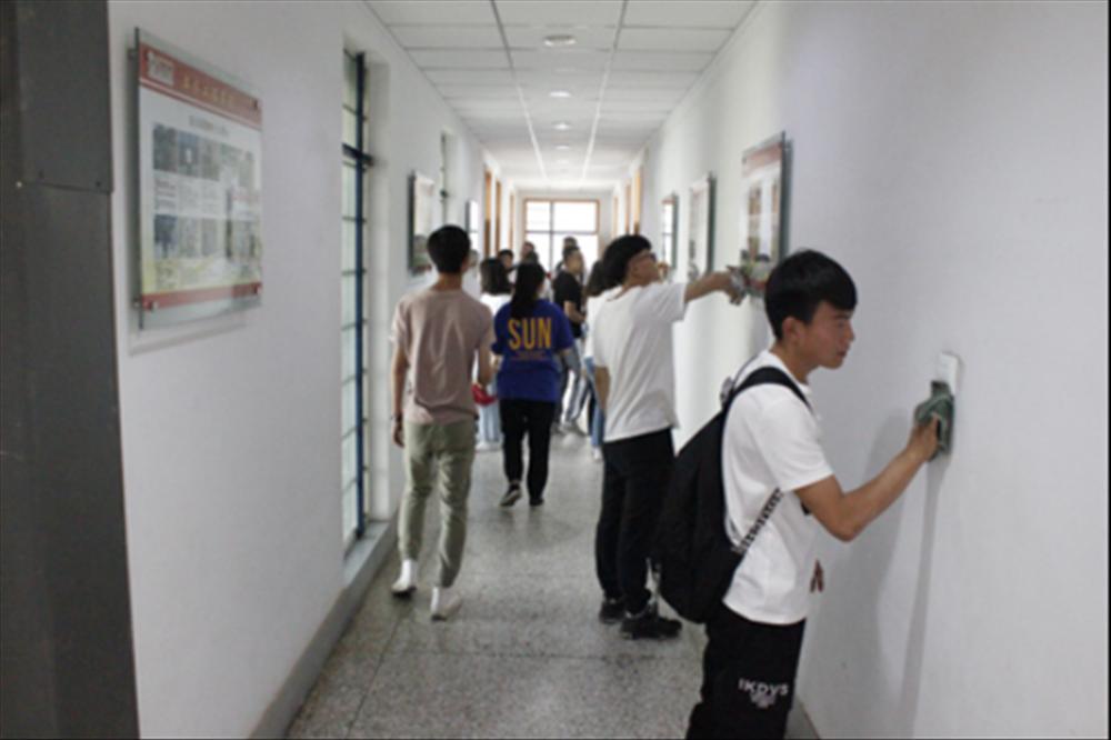 在工作人员的组织下,本次义务劳动有序开展。学员们对土木馆周边、馆内机房及楼道、公共区域等进行了清扫。